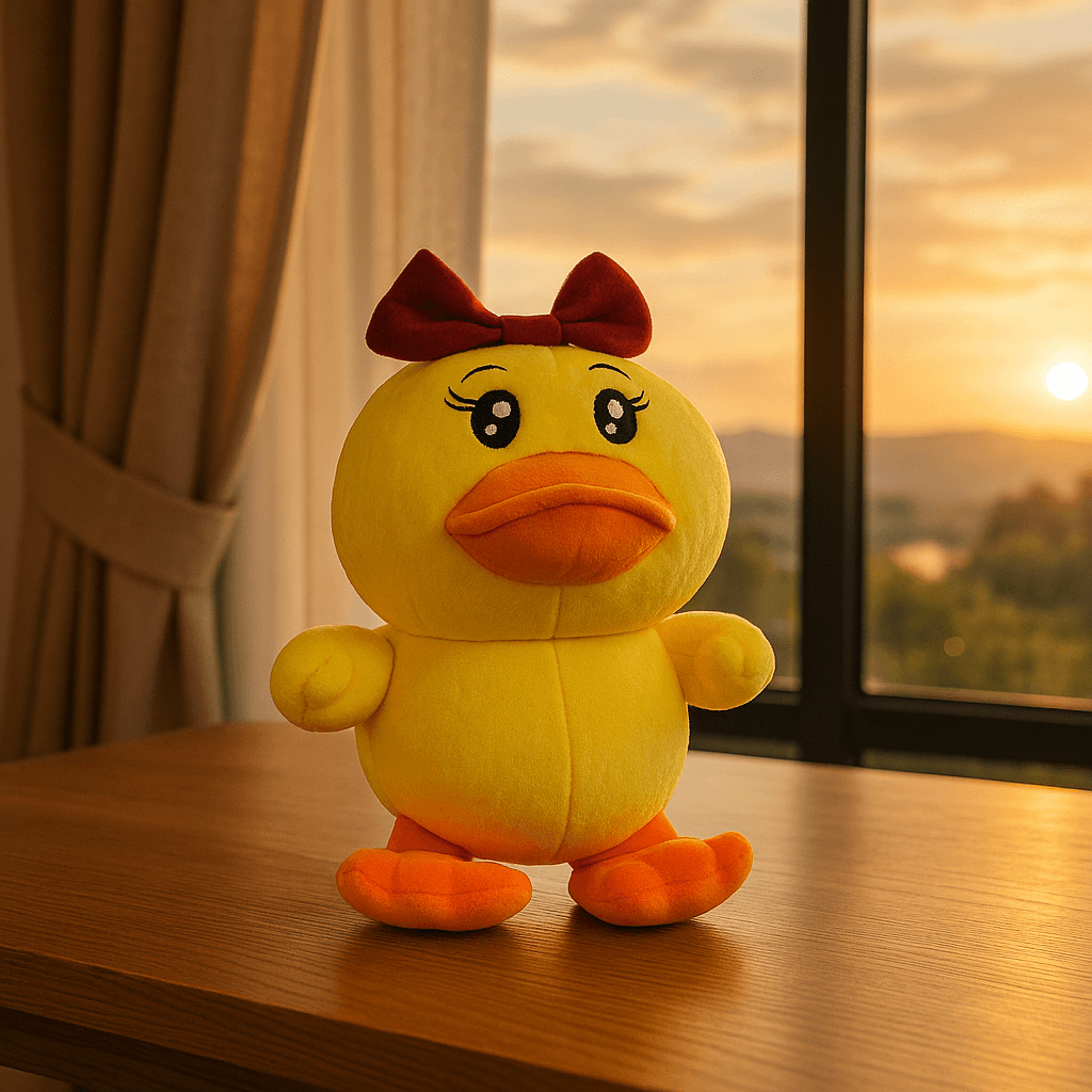 Delivery in 3-5 days for Prepaid & For COD 4-6 DaysBring home this adorable yellow duck soft toy that instantly melts hearts đ. Made with ultra-soft plush fabric, this stuffed duck is gentle on skin and completely safe for babies and kids. The cute bow on its head and expressive eyes make it a perfect cuddle companion and a lovely dĂ©cor piece for kidsâ rooms.