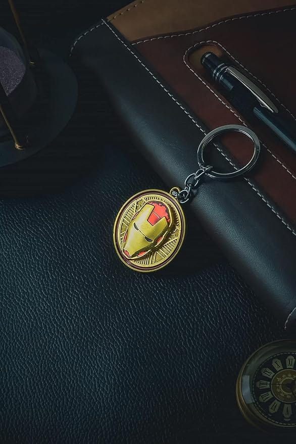 Unleash your inner superhero with this premium metal Iron Man face rotating keychain. Crafted from a durable, high-quality zinc alloy with a glossy metallic gold and red finish, this keyring is a must-have accessory for any Marvel fan.